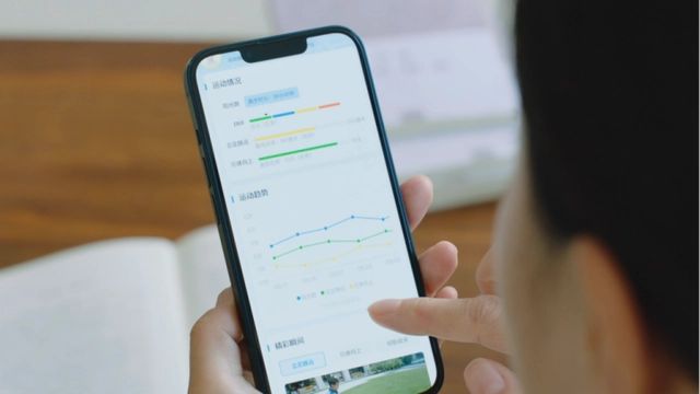 除了操场上的有道趣动屏之外,也有满足多角色需求、对数据进行多维度呈现的软件端。教师还能通过手机端和电脑端查看班级数据,家长也能通过移动设备了解孩子的体育运动情况。